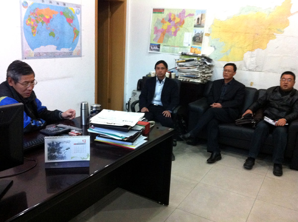 王延軍副書(shū)記現(xiàn)場(chǎng)聽(tīng)取技術(shù)組長(zhǎng)傅國(guó)亮的工作匯報(bào)