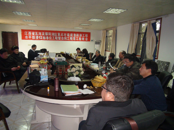 2012年1月10日,江西省五河及鄱陽(yáng)湖區(qū)重點(diǎn)圩堤應(yīng)急防滲工程建設(shè)項(xiàng)目部在江西省共青城市主持召開了水平防滲12標(biāo)單位工程暨合同工程完工驗(yàn)收會(huì),并順利通過了單位工程暨合同工程完工驗(yàn)收。驗(yàn)收會(huì)由省河湖局許盛豐主持。公司吳鐵凡總工程師、工程部郭洪有經(jīng)理參加了驗(yàn)收會(huì)。