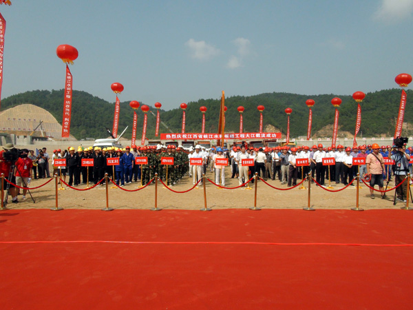 8月29日上午,我省目前投資規(guī)模最大的水利樞紐工程--峽江水利樞紐工程舉行大江截流儀式。根據(jù)江西省峽江水利樞紐工程建設(shè)總指揮部的安排,我公司總經(jīng)濟(jì)師孫八根、副總經(jīng)理胡鴻煌率領(lǐng)60多人的隊(duì)伍參加了峽江水利樞紐工程大江截流儀式。