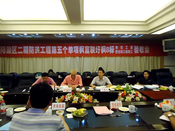 參加驗收會的單位有:省河湖局、上饒市城防處、省水利規(guī)劃設(shè)計院、余干縣水利局、余干縣建設(shè)項目部、上饒市水利水電建設(shè)工程監(jiān)理中心、杭州慶達工程監(jiān)理咨詢有限公司、省水利廳水利工程建設(shè)質(zhì)量與安全監(jiān)督中心站、楓富聯(lián)圩管理局、康山大堤管理局。我司副總經(jīng)理胡鴻煌等代表公司參加了驗收會。