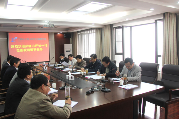 孫廳長一行與我公司總部中、高層管理人員進行了親切座談。會談一開始,孫廳長開門見山的指出,根據(jù)黨的十八大精神,為使江西水利工作更貼近群眾、貼近社會,轉(zhuǎn)變工作作風,更好地為建設(shè)小康社會服務,這次調(diào)研主要是聽取省水建公司作為以水利為主業(yè)的施工企業(yè)對水利公共服務工作的要求和建議,以及由省屬水利企業(yè)改制后闖市場、走天下的感想和體會,為下一步加快江西水利改革發(fā)展、加強水利市場管理提供參考和借鑒經(jīng)驗。