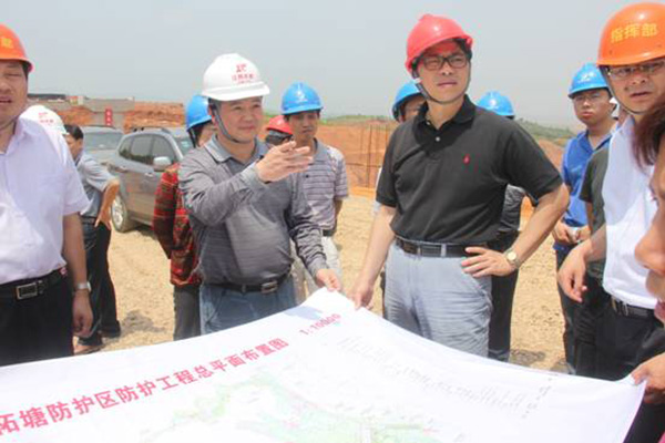 2013年5月31日,江西省水利廳黨委書(shū)記、廳長(zhǎng)孫曉山一行到我公司承建的柘塘防護(hù)工程和樟山防護(hù)工程進(jìn)行調(diào)研并指導(dǎo)工作。
