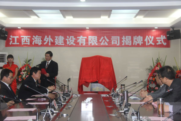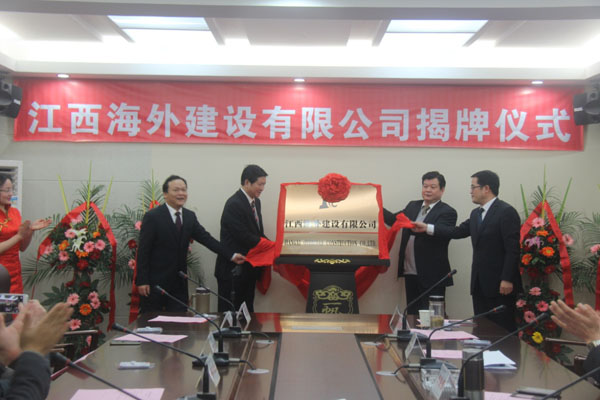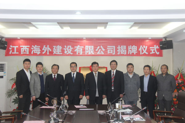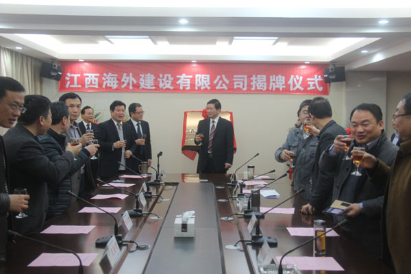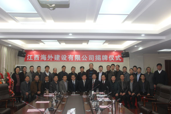 隨后,伴隨著歡樂(lè)喜慶的歌曲,總公司董事長(zhǎng)王元旦,總經(jīng)理徐洪良與江西海外建設(shè)有限公司執(zhí)行董事張周平,總經(jīng)理黃鄭民為新公司揭牌并合影留念。