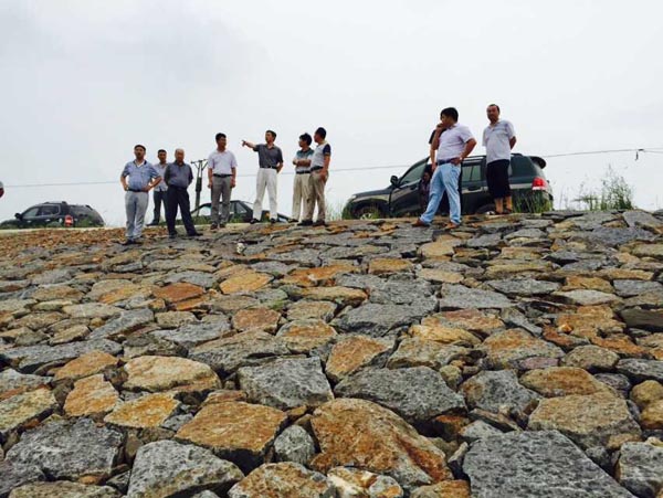驗(yàn)收工作組成員與專家現(xiàn)場察看工程質(zhì)量
