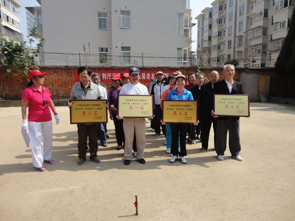 2015年10月28日,我公司門(mén)球代表隊(duì)參加了江西省水利廳廳直單位第七屆“老友杯”門(mén)球賽,本次比賽由江西省水利廳離退休干部處主辦、江西省水利水電建設(shè)有限公司承辦,廳直單位共4個(gè)代表隊(duì)參加。經(jīng)過(guò)緊張激烈的角逐,我公司門(mén)球代表隊(duì)榮獲本次比賽團(tuán)體組第一名。
