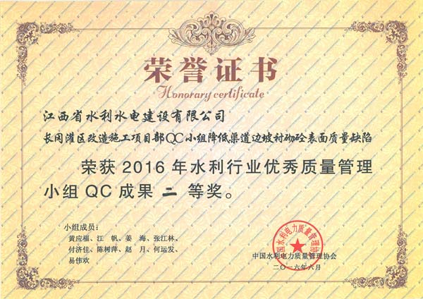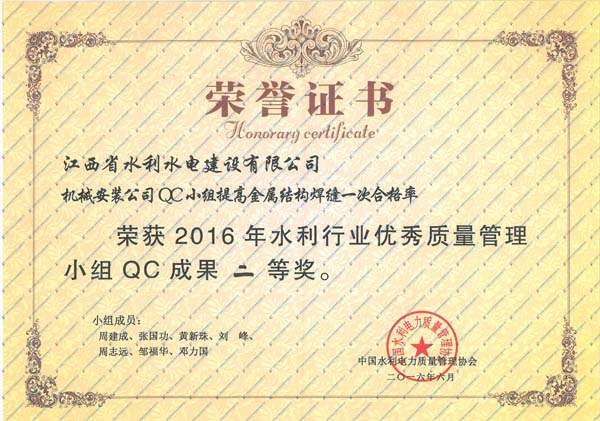 集團(tuán)資訊2016年6月20日至24日,中國水利電力質(zhì)量管理協(xié)會水利分會在安徽省安慶市,舉辦了2016年水利行業(yè)優(yōu)秀質(zhì)量管理小組成果發(fā)表會,并在本次發(fā)表會上發(fā)布了156項(xiàng)QC成果。中國水利電力質(zhì)量管理協(xié)會水利分會組織評審專家,對發(fā)表的QC成果進(jìn)行了現(xiàn)場評審,對經(jīng)評審獲得一、二等獎的單位進(jìn)行了表彰。本次成果發(fā)表會上,我公司共有3項(xiàng)QC成果獲一等獎,兩項(xiàng)QC成果獲二等獎,成績較往年有較大幅度提高。