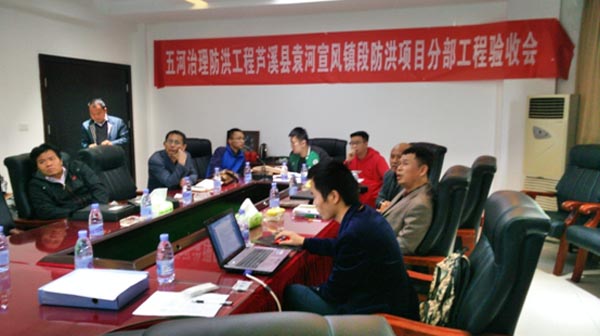 集團(tuán)資訊 2016年10月31日,我公司承建的五河治理防洪工程蘆溪縣袁河宣風(fēng)鎮(zhèn)段防洪項目在蘆溪縣水務(wù)局會議室主持召開了分部工程驗(yàn)收會議,分部工程驗(yàn)收工作組由江西省五河治理防洪工程項目部、蘆溪縣五河治理防洪工程項目部、江西省水利規(guī)劃設(shè)計院、江西省建洪工程監(jiān)理咨詢有限公司以及我公司等相關(guān)單位的代表組成。公司工程部郭洪有出席了此次驗(yàn)收會議。