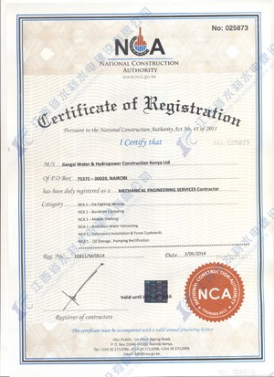 江西省水利水電建設(shè)有限公司肯尼亞分公司接到通告后,積極準(zhǔn)備相關(guān)資料,憑借公司的技術(shù)實(shí)力和肯尼亞市場(chǎng)的良好業(yè)績(jī),最終取得所有六項(xiàng)的一級(jí)證書。其中包括:水利施工一級(jí),公路工程施工一級(jí),房屋建筑工程施工一級(jí),結(jié)構(gòu)施工一級(jí),電力工程施工一級(jí)和機(jī)電工程施工一級(jí),有力地提升公司的品牌影響,提升了公司資信競(jìng)爭(zhēng)力,為公司在肯尼亞各項(xiàng)工作的全面深入開(kāi)展創(chuàng)造了積極有利的條件。