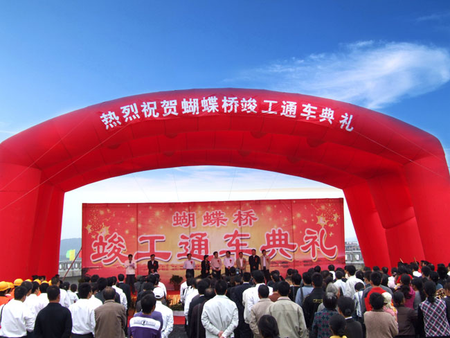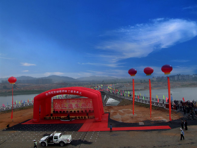 九月金秋,流光溢彩。2010年9月30日,在祖國(guó)華誕即將到來(lái)之際,我公司承建的宜春市秀江三級(jí)抬水壩及景觀橋(又稱為蝴蝶橋)工程舉行了竣工通車典禮。