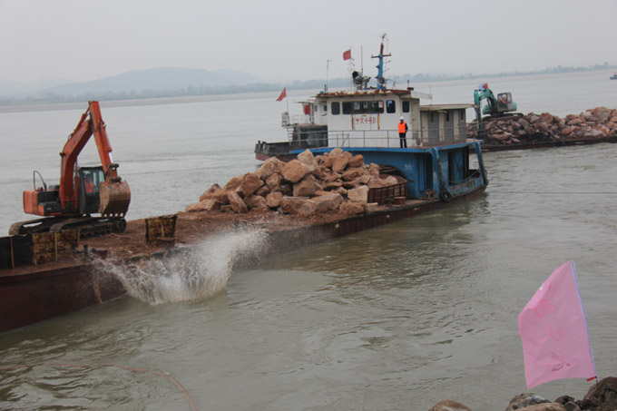 (九江長江江心洲固岸應急度汛工程,包括九江縣江新洲1標和彭澤縣棉船洲1標,主要建設內容為拋石、砼四邊六面框架、干砌石護坡,工程施工期2個月,項目總投資4000萬元。江新洲和棉船洲大堤共保護面積130.39 平方公里,保護耕地12.18萬畝,保護人口8.39萬人,圩區(qū)內土地肥沃,灌溉便利,是江西省的重要棉油生產(chǎn)基地。)