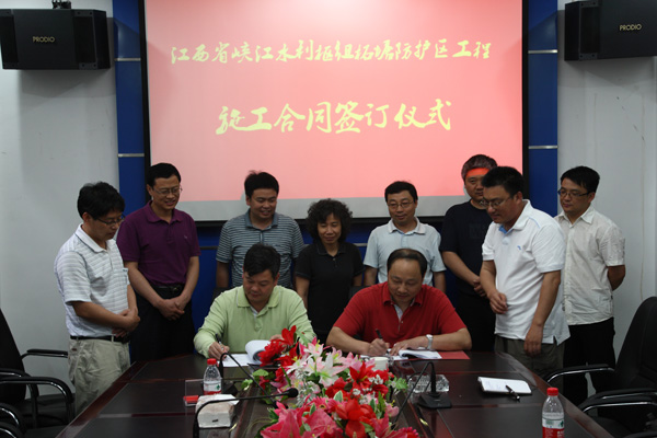 日前,我公司收到江西省峽江水利樞紐工程建設(shè)總指揮部中標(biāo)通知,成功中標(biāo)峽江水利樞紐工程柘塘防護(hù)工程。5月11日上午,公司董事長(zhǎng)總經(jīng)理王元旦代表公司與業(yè)主簽訂施工合同協(xié)議書(shū),合同額為8741.44萬(wàn)元。