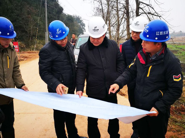 1月31日,董事長王元旦率總經(jīng)理徐洪良、書記王延軍、工會(huì)主席史偉、董事會(huì)秘書劉俊視察廖坊灌區(qū)二期工程PPP項(xiàng)目。