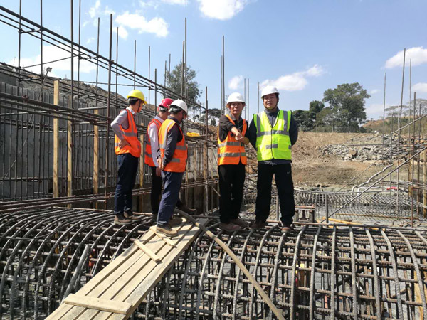 在項(xiàng)目現(xiàn)場,王元旦董事長重點(diǎn)察看了大壩進(jìn)水口工作面包括大壩基礎(chǔ)混凝土的澆筑、取水隧洞的施工情況,聽取了項(xiàng)目進(jìn)展情況匯報(bào)。王元旦董事長對項(xiàng)目安全生產(chǎn)、質(zhì)量及進(jìn)度情況表示滿意,他鼓勵項(xiàng)目部同志再接再厲,注重安全生產(chǎn),嚴(yán)把質(zhì)量關(guān),按期完成施工任務(wù),努力把該項(xiàng)目打造成江西水建精品工程,提升公司在盧旺達(dá)國家、世界銀行組織的知名度。