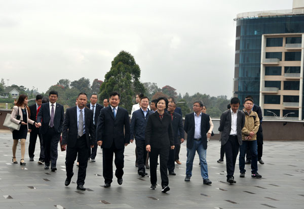 訪問團一行首先參觀了雙河商貿(mào)中心,對雙河項目給予了充分肯定。座談期間,公司董事長王元旦及江西國際、江西中煤等駐肯企業(yè)代表逐一就企業(yè)在肯尼亞的發(fā)展情況進行匯報。馮桃蓮主任充分贊揚了江西企業(yè)在肯尼亞的各項優(yōu)秀業(yè)績,同時指出,在省委、省政府的正確領導下,希望各駐肯企業(yè)能夠緊密合作、抱團發(fā)展,加強安全管控,提升企業(yè)抗風險能力,樹立良好的企業(yè)形象。