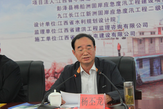 省水利廳副廳長楊丕龍在會上作了重要講話,他對九江長江江心洲固岸應(yīng)急度汛工程棉船洲1標和江新洲1標進展予以充分肯定,并代表省水利廳黨委向有關(guān)單位和部門對水利建設(shè)的關(guān)心和支持表示衷心感謝,向奮戰(zhàn)在固岸應(yīng)急度汛工程建設(shè)一線的參建各單位和工作人員表示親切慰問。