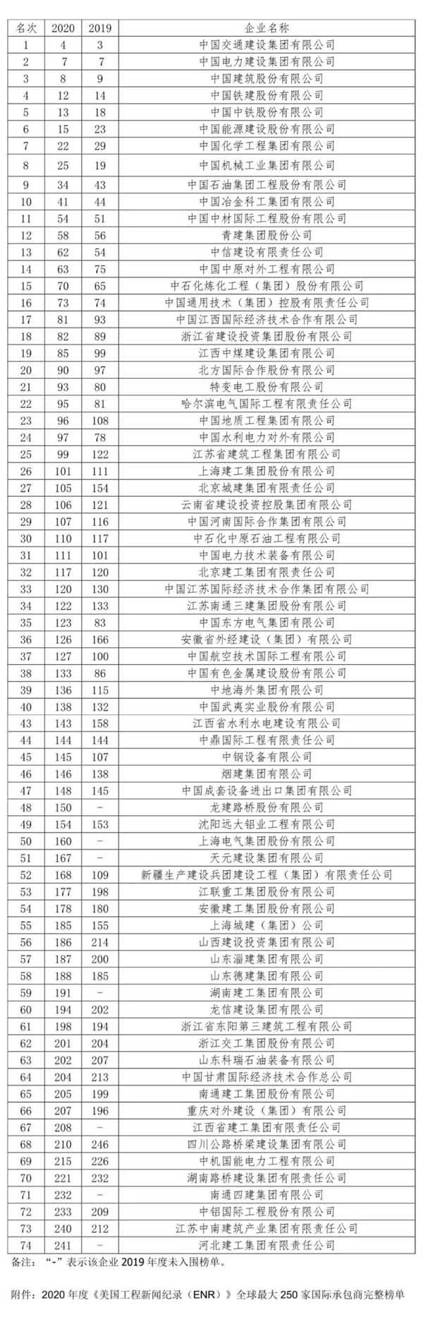 集團(tuán)資訊美國當(dāng)?shù)貢r(shí)間8月20日,2020年度美國《工程新聞紀(jì)錄(ENR)》“全球250家國際承包商”榜單發(fā)布。