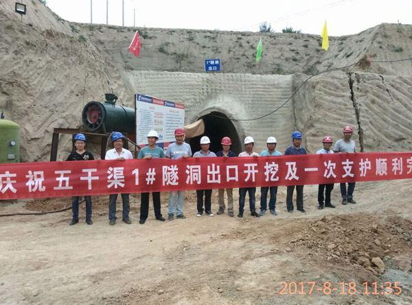 2017年8月18日,由公司承建的甘肅省引洮供水二期工程主體工程施工第37標段五干渠1#隧洞(樁號2+613.50~4+006.50段)1393m開挖及一次支護工程完成。
