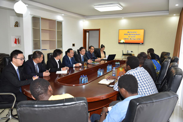 9月23日上午,盧旺達(dá)MIG考察團(tuán)一行來(lái)我肯尼亞公司參觀。海外公司總經(jīng)理黃鄭民,肯尼亞分公司總經(jīng)理賀翔,肯尼亞分公司副總經(jīng)理彭紅軍,肯尼亞分公司商務(wù)經(jīng)理黃飛翔,肯尼亞分公司財(cái)務(wù)經(jīng)理程炤宇等參加了會(huì)見(jiàn)。