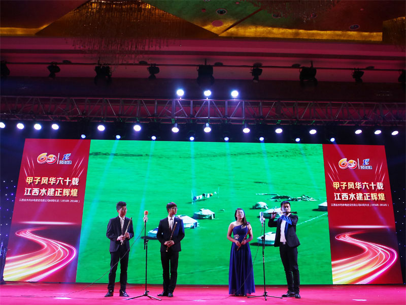 在喜慶熱鬧的開場舞《盛世中華》樂曲聲中,拉開了晚會的序幕,一曲優(yōu)美動聽的《今天是你的生日》,表達了對公司六十華誕的深情祝福,配樂詩朗誦《我驕傲,我是水建人》抒發(fā)了水建人對水利事業(yè)的熱愛與執(zhí)著,舞蹈《我的祖國》,展現(xiàn)了公司退休女職工的精神風采和對公司的深厚感情,男聲獨唱《羅灣那個地方》,喚起了多少“羅灣水建人”曾經(jīng)在那里生活的記憶,來自上海的退休職工代表,為晚會帶來一首自己改編的歌曲《水建的朋友來相會》,詮釋了他們的激情與夢想,最后,由公司高中層管理人員和總部員工組成的60人大合唱《團結就是力量》,把晚會推向了高潮。團結是我們的力量之源,團結是企業(yè)騰飛的支點,走過了六十年輝煌歷程的江西水建,正在昂首闊步踏上新的征程。讓我們團結起來,以必勝的信心,發(fā)奮的努力,繼承和發(fā)揚老一輩水建人的精神和傳統(tǒng),擔當起新一代水建人改革創(chuàng)新科學發(fā)展的光榮使命,繼往開來,解放思想,開拓創(chuàng)新,凝心聚力,不斷開創(chuàng)江西水建發(fā)展的新局面,創(chuàng)造更加燦爛的明天!